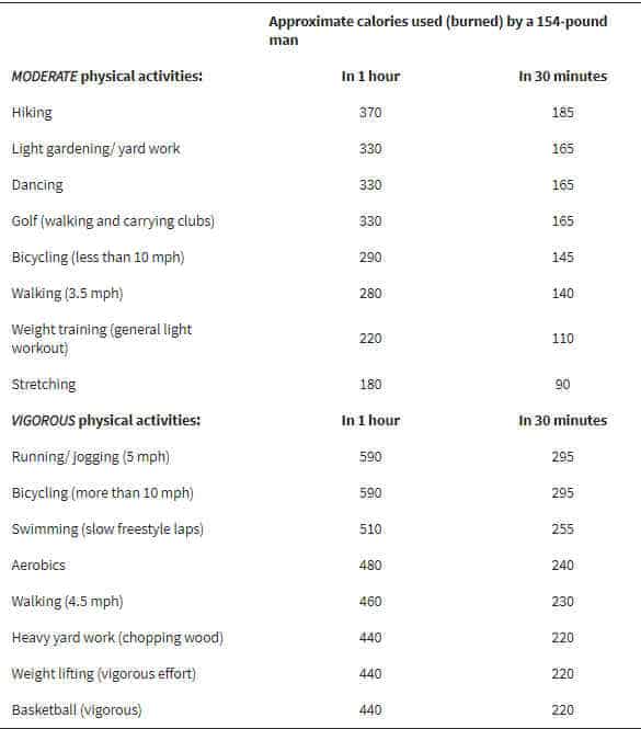 Have a look at how calories are burned when you exercise for one hour in different types of physical activity.